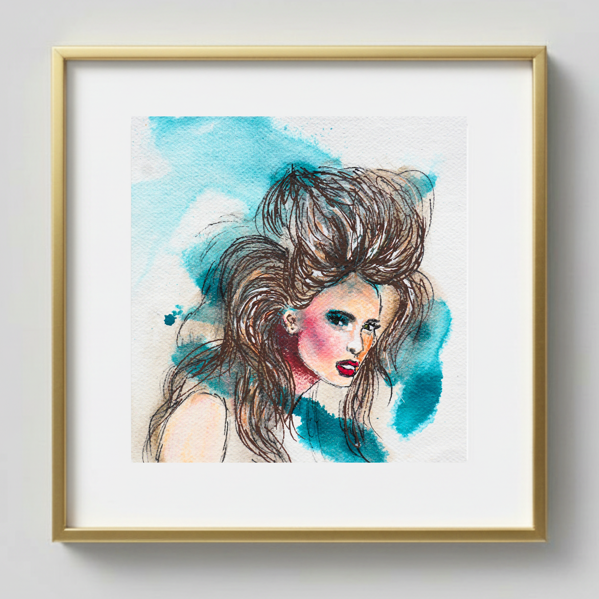 12"x12" mixed media on paper, gold frame with plexiglass included