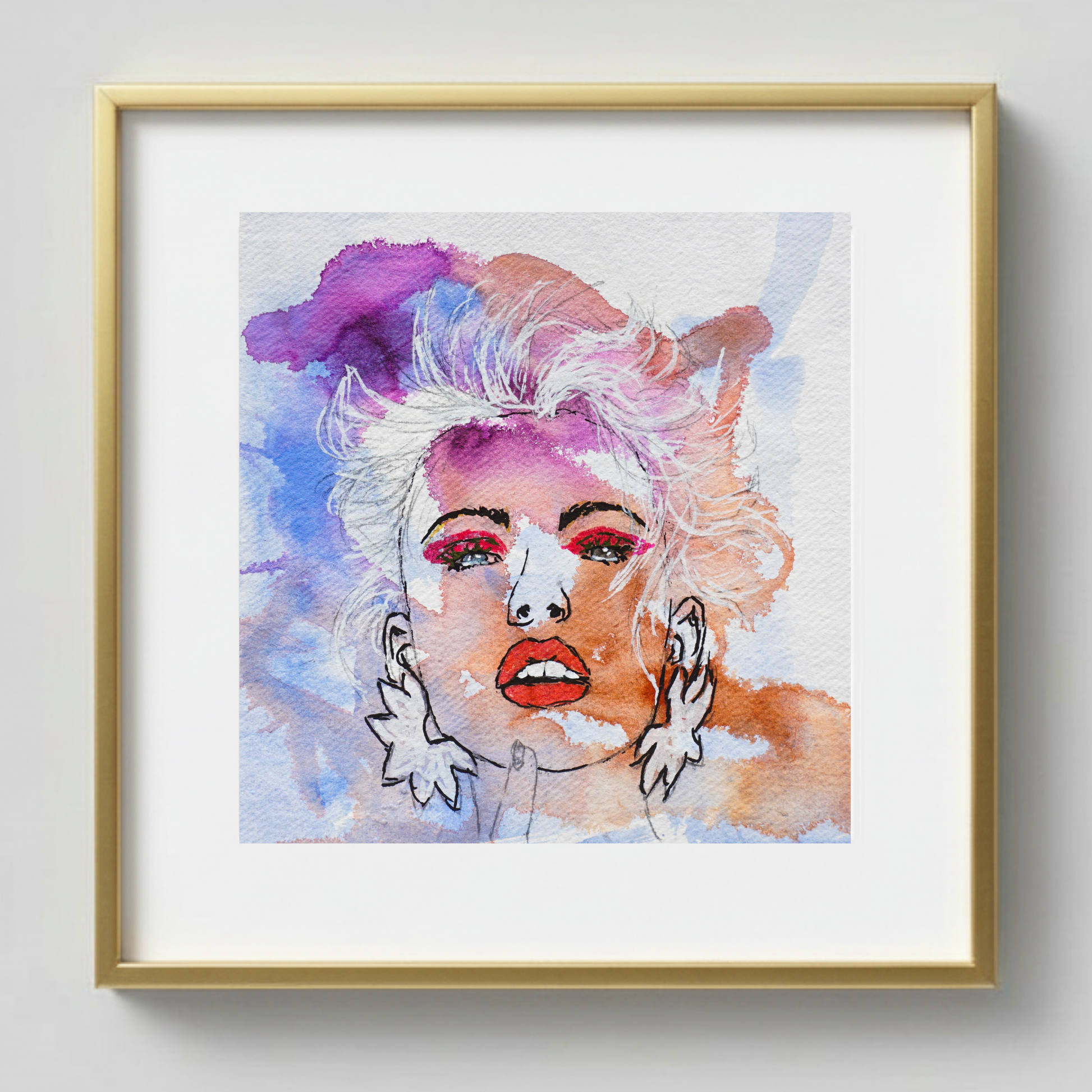12"x12" mixed media on paper, gold frame with plexiglass included