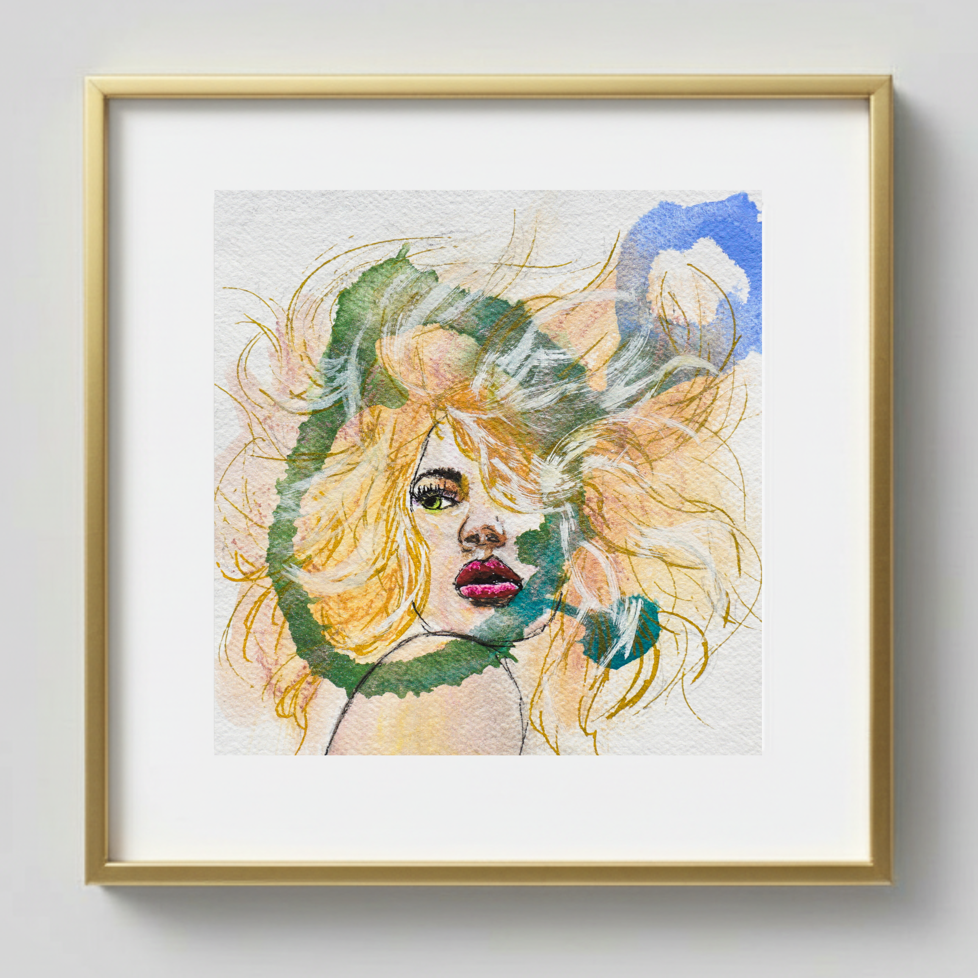 12"x12" mixed media on paper, gold frame with plexiglass included
