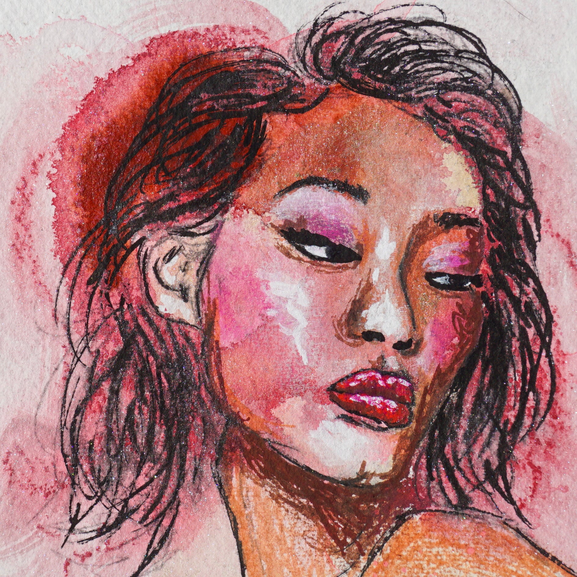 8"x8" mixed media on paper, gold frame included
